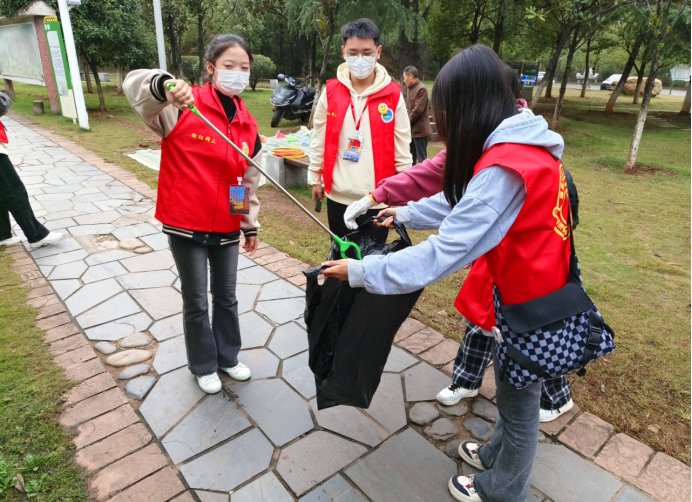 本网讯(通讯员 李水华)为倡导绿色、低碳、环保的生活方式,努力营造人人参与生活垃圾分类的良好氛围,切实提高当代大学生的环保意识。10月28日上午,经济管理学院团总支20名团干在党总支副书记李燕丽的带领下,赴平湖公园开展主题为“共筑美好家园”的环保志愿活动,用实际行动宣扬环保意识,以青春之汗水践行守卫碧水蓝天誓言。
