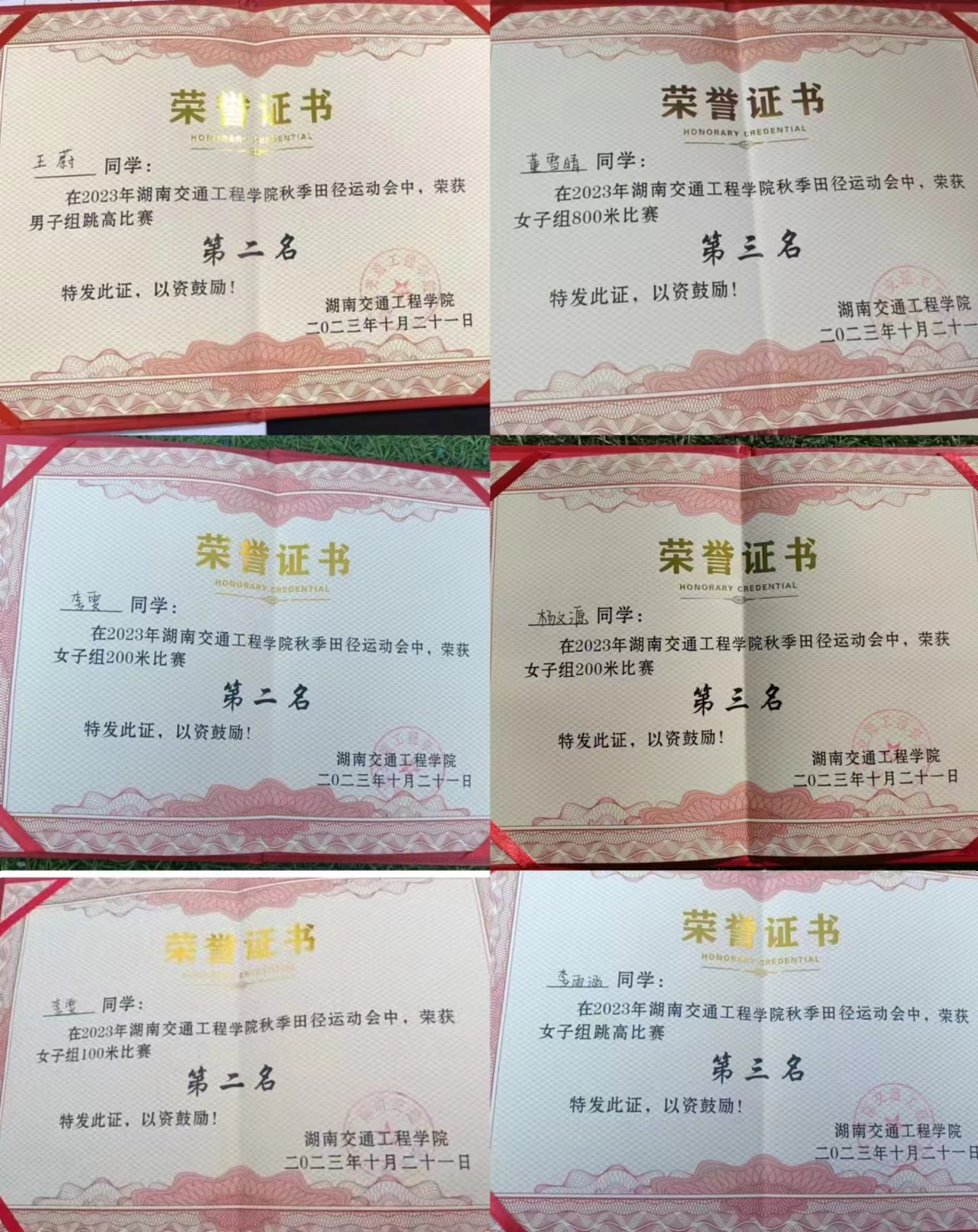 许泽文  | 护理专2304  | 4×100m第二名  |