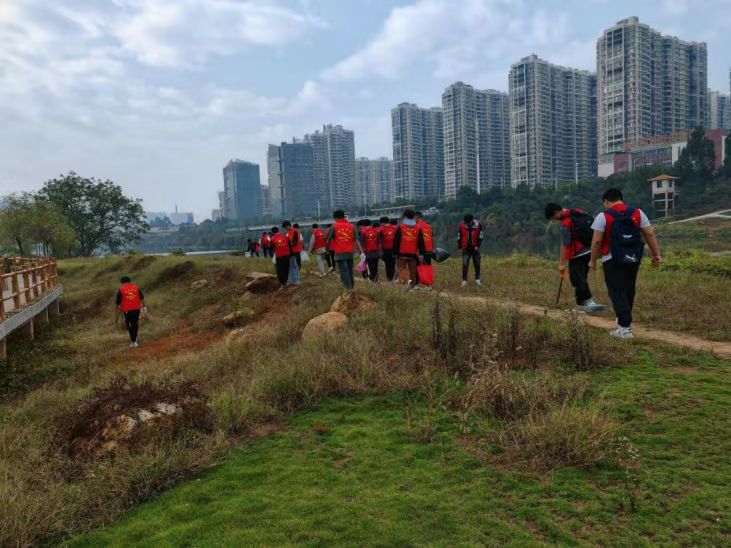 活动现场,志愿者们身着红色马甲,利用垃圾钳、垃圾袋等工具在蒸水风光带开展垃圾清理行动。志愿者们细心观察发现隐藏在草丛中的纸屑、烟头、矿泉水瓶、纸巾等垃圾后,全部用垃圾袋清理带走,并按照可回收、有害、湿垃圾等类别进行了分类投放,以身体力行的方式呼吁人们践行环境保护。通过志愿者的不懈努力,蒸水河岸两边的生态环境得到了显著改善。刘书记指出,此次活动得到了青年团干们的积极响应和踊跃参与,旨在通过活动让“绿色、环保、循环、低碳”的理念深深根植于广大青年学生的内心,引导更多的大学生为美化家园、改善环境尽自己一份力量,争做垃圾分类的志愿者、践行者、推动者和宣传者。