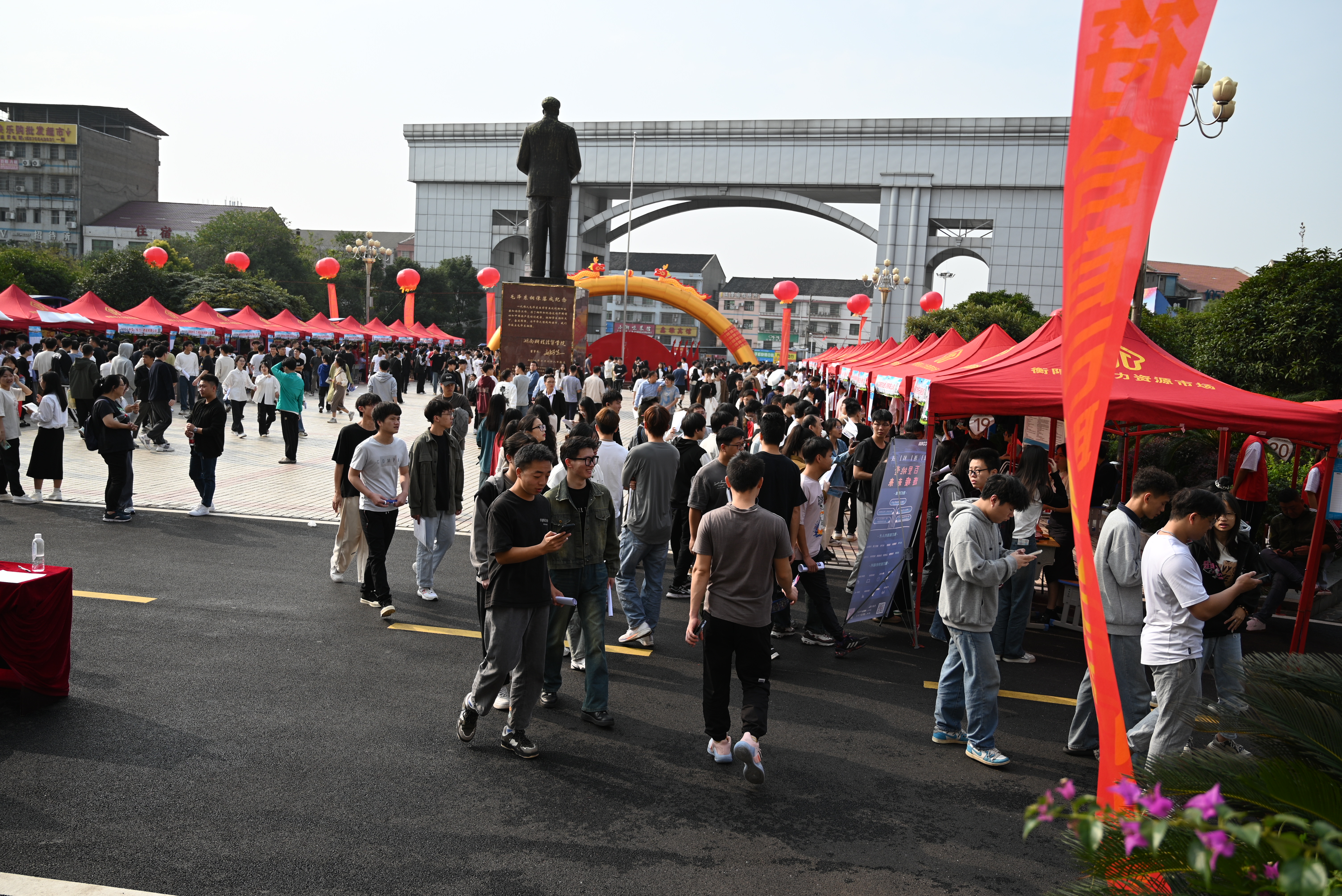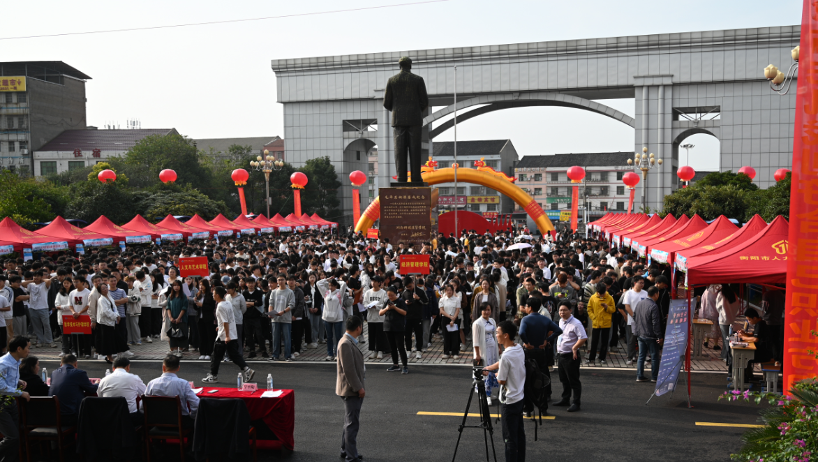 本网讯(通讯员 赵红深  摄影   大学生记者团)自古逢秋悲寂寥,  我言秋日胜春朝。11月4日,阳光灿烂,秋高气爽,毛泽东铜像文化广场人头攒动,气氛热烈,新葡萄2024届毕业生秋季就业双选会在此举行。上海坤朋医药、宁波金海电子、太平洋四建、新疆特变电工、杭州轴承、广东海大、深圳壹连科技等100余家用人单位来校揽才,累计为毕业生提供岗位10000余个,专业需求覆盖新葡萄所有专业;新葡萄4300余名毕业生应聘,近6000在校二年级三年级学生观摩,共计10000余学生参加此次招聘活动,形成了万余岗位万余人参会的“双万”场面,劲爆劲憾!