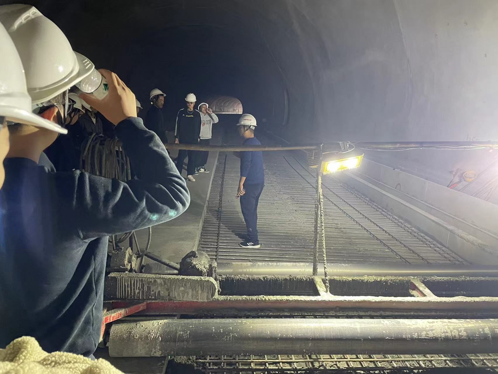 随后,袁盛带领大家进入隧道内部参观见习,并就隧道的施工工艺、施工方法和施工特点进行了详细讲解,学生们热情高涨,争相踊跃发言提问。