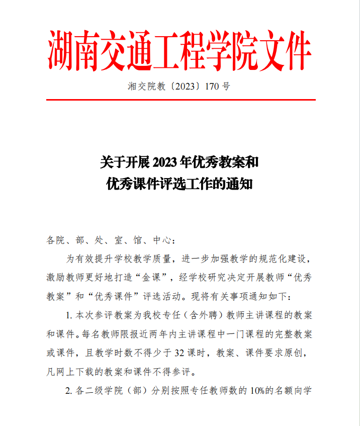 关于开展 2023 年优秀教案和 优秀课件评选工作的通知