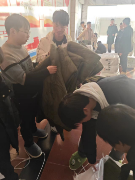 爱心棉衣、棉被发放活动于20231225日下午在教学楼大厅举行。在现场,机电工程学院学生干事何立权和各班辅导员为同学们送上一件件棉衣、一床床棉被、一份份关怀,为同学们送上了暖心和关怀。同时,各辅导员对同学们表达了关心和期盼,希望同学们直面困难,不怕困难,常怀感恩之心,常行感恩之举,练就过硬本领,回馈社会,报效祖国。一件件崭新的棉衣、棉被送到学生们的手上,每一件都饱含着学校和学院对学生的深深关怀。