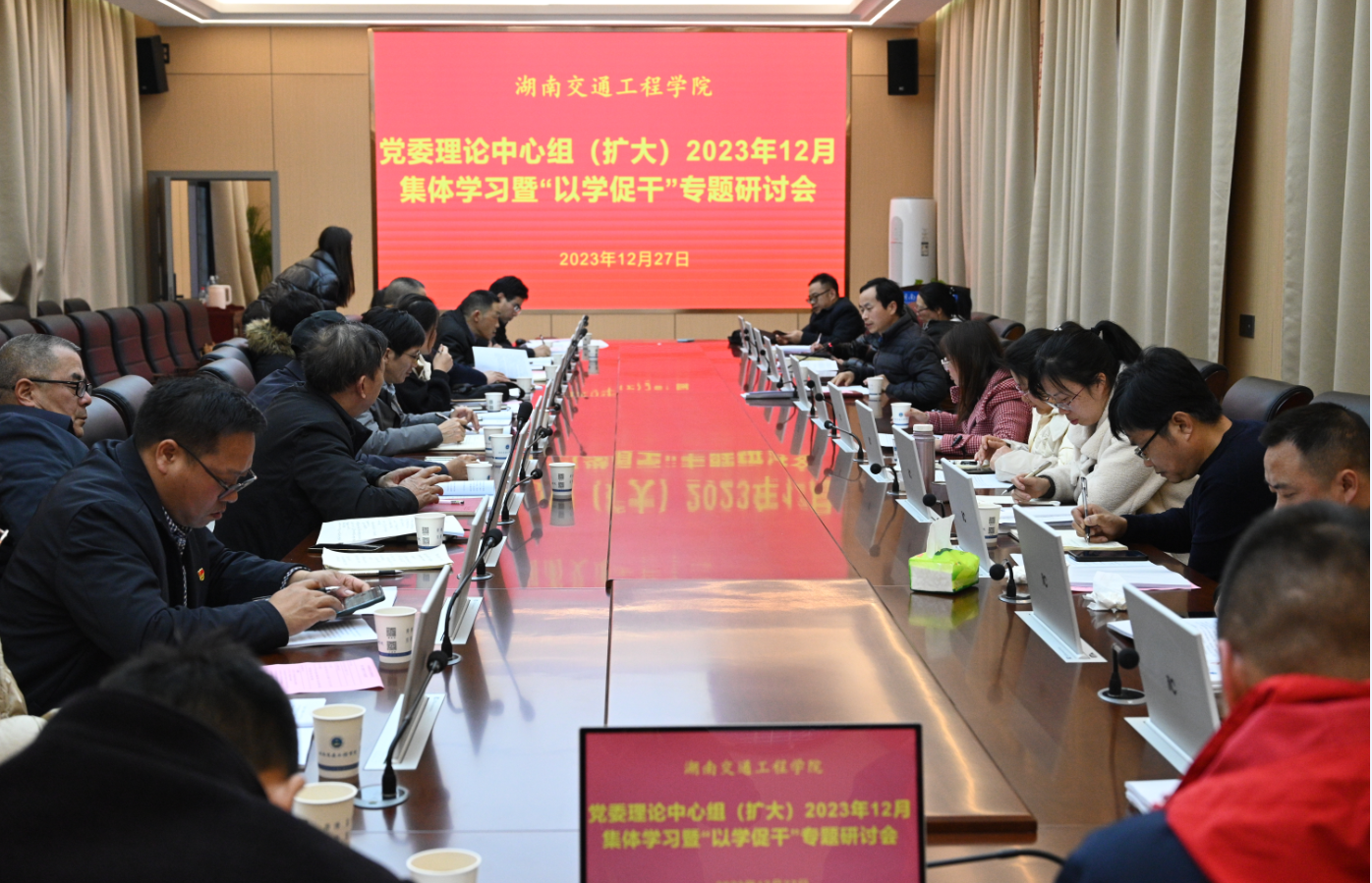 本网讯(通讯员 摄影 赵红深)12月27日下午,学校在航母楼四楼会议室举行12月集体学习暨“以学促干”专题研讨,校党委书记刘文君主持学习研讨并讲话。校党委委员,党务工作部门负责人,各党总支(直属支部)正副书记,各二级学院正副院长参加了学习研讨。