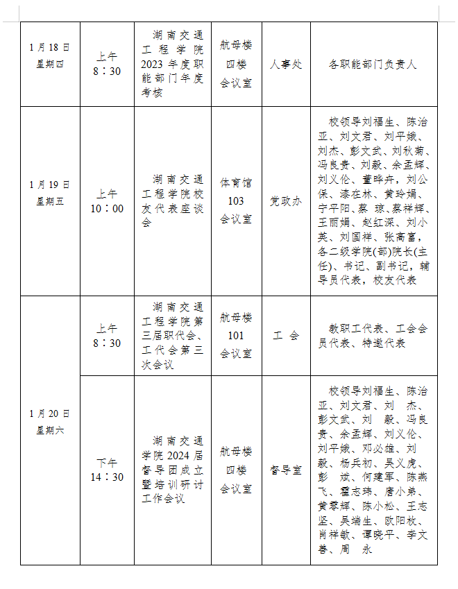 新葡萄8883官网AMG官网2023-2024学年度第一学期第十九周会议安排表