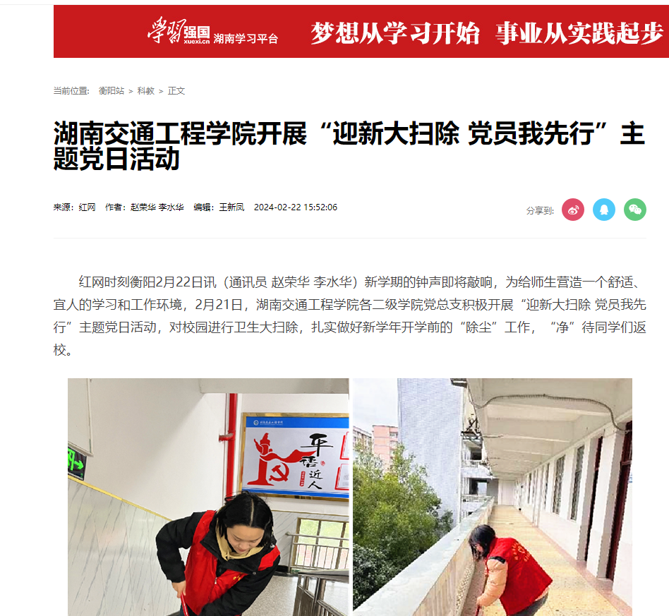 【红网时刻】新葡萄8883官网AMG官网开展“迎新大扫除 党员我先行”主题党日活动