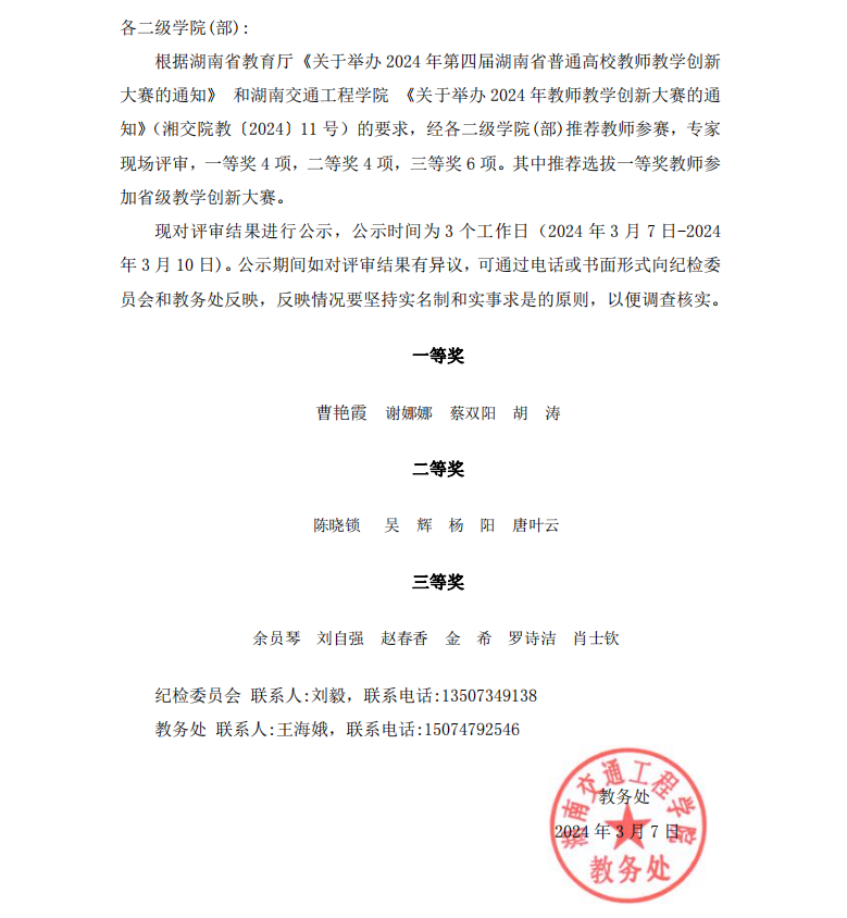 2024 年新葡萄8883官网AMG官网 教师教学创新大赛结果公示