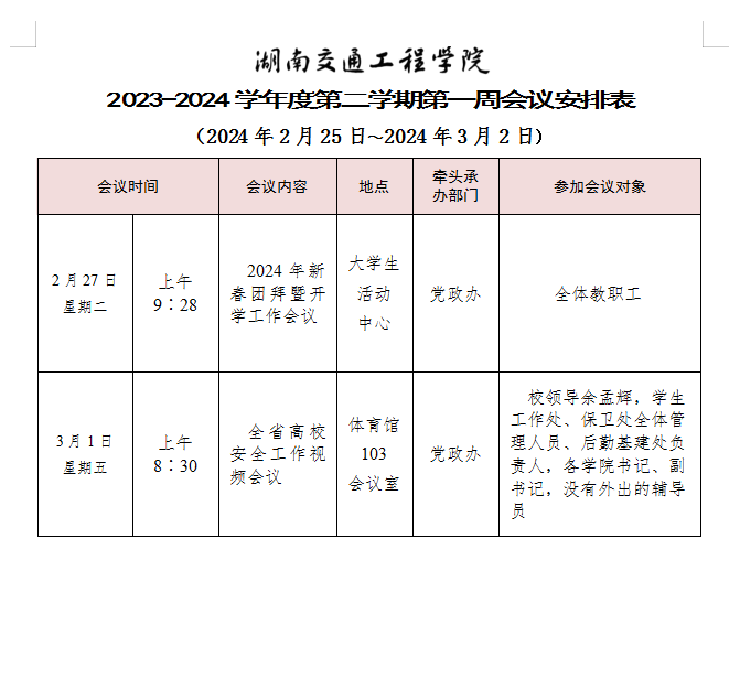 新葡萄8883官网AMG官网2023-2024学年度第二学期第一周会议安排表