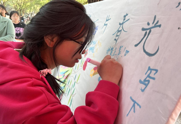活动现场,在志愿者的有序组织下,同学们积极参与到了创意涂鸦的过程中来,用所提供的颜料和画笔,将自己的想法汇入到了同一棵“大树”,也将自己对于这次活动的感受和未来的愿望写在了便利贴上,文字与涂鸦的巧妙融合构成了一棵枝繁叶茂的大树。