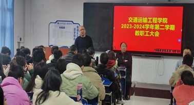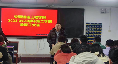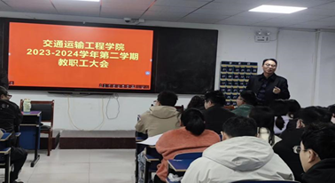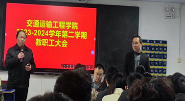 2024年3月7日下午15:00,交通运输工程学院2023-2024学年第二学期教职工大会在机电楼512召开,出席本次会议的有交通运输工程学院院长罗迎社、副院长涂宇、副院长郑哲文、党支部书记何美生、副书记何文华以及全院教师,本次会议由院长罗迎社主持。
