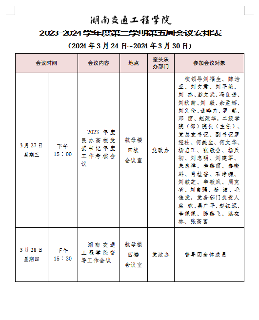 新葡萄8883官网AMG官网2023-2024学年度第二学期第五周会议安排表