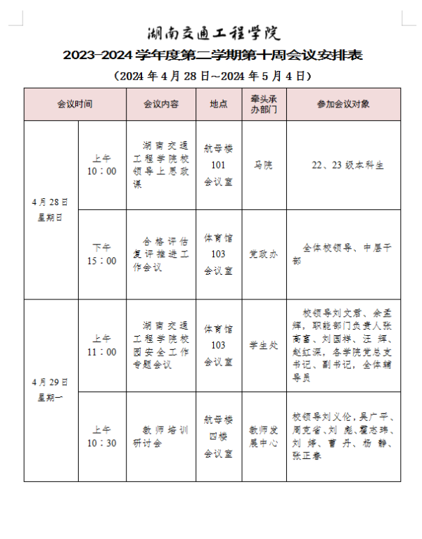 新葡萄8883官网AMG官网2023-2024学年度第二学期第十周会议安排表