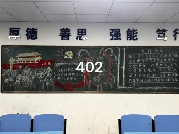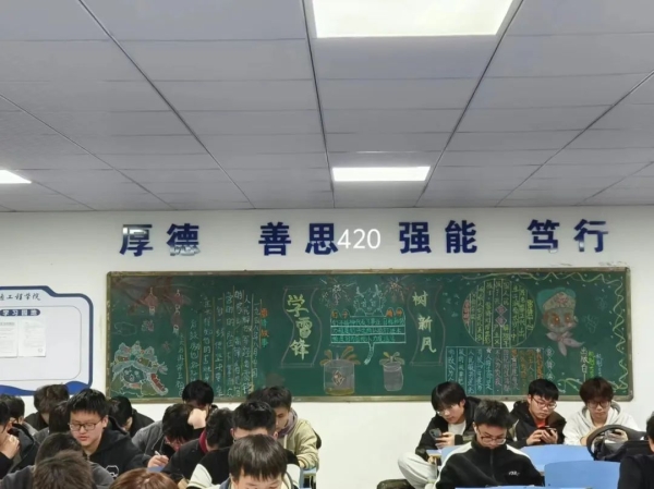 了深入学习雷锋精神,培养有理想、敢担当、能吃苦、肯奋斗的新时代好青年。机电工程学院于3月11日晚19:20成功举行以“不忘初心学雷锋,青春使命共传承”为主题的黑板报评比活动。