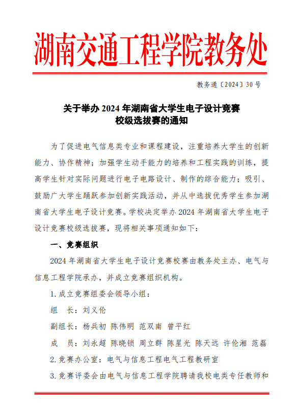 关于举办2024年湖南省大学生电子设计竞赛校级选拔赛的通知.pdf