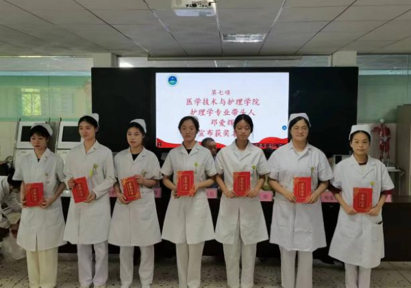 比赛结束后,根据评委老师打分,共选出一等奖四名,二等奖八名,三等奖十八名,护理学专业带头人邓爱辉老师宣布获奖名单,校院领导老师为获奖选手进行颁奖。