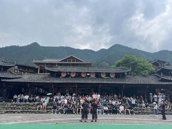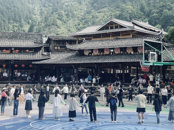 对于音乐专业师生来说,最激动人心的事过于欣赏西江千户苗寨歌舞。西江千户苗寨苗族同胞表演的歌舞节目民族色彩浓郁,呈现了华丽的服饰、欢快的情绪和美丽的爱情故事。苗族古歌演唱,演唱者全是寨中的老人,用苗族古语演唱其史诗般宏大的古歌。掌坳的铜鼓舞、方祥的高排芦笙、反排的木鼓舞表演,看了令人热血沸腾。在当地经验丰富的苗族艺人耐心且细致的指导下,师生们全身心地投入到对西江千户苗寨歌舞的学习之中,深切地领略到了苗族音乐文化那动人心魄的独特魅力。师生们还激情满满地学习了苗族充满活力的《团结舞》,借由舞蹈这一灵动的形式,将苗族人民团结奋进、齐心协力的精神展现得淋漓尽致。在整个学习过程中,师生们与当地艺人展开了亲密而深入的交流,由此对苗族源远流长的历史、丰富多彩的文化以及独具特色的风俗习惯有了崭新的认识。