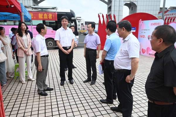 本网讯( 通讯员  摄影  赵红深)6月13日上午,在第二十个“6.14”世界献血者日来临之际,衡阳市副市长谢宏,市卫生健康委党组副书记、副主任邹建军,市红十字会专职副会长周晴和市中心血站党委书记唐先绪等一行6人来新葡萄慰问无偿献血大学生和大学生志愿者,并看望坚守一线的采血工作人员,向他们送上节日的祝贺。学校党委书记刘文君、执行校长刘杰、常务副校长彭文武陪同慰问。
