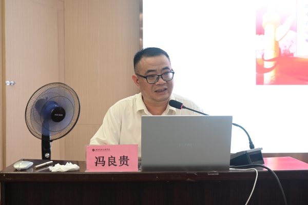 本网讯(通讯员 摄影 赵红深 )为全面贯彻习近平总书记关于党校工作重要论述和全省党校会议精神,落实立德树人根本任务,增强毕业生党员在新征程上继续坚定理念信仰、加强党性修养,6月14日下午,学校在航母楼101会议室开展“潮起海天阔,扬帆正当时”主题党课活动,为2024届毕业生党员离校前上最后一次党课,开展党性教育和党纪教育。学校党委副书记冯良贵以《在“四史”学习中坚守初心,汲取砥砺前行的力量》为题讲授了党课。学生党支部书记、2024届全体毕业生党员参加了党课学习;党委组织部副部长李佩佩主持。