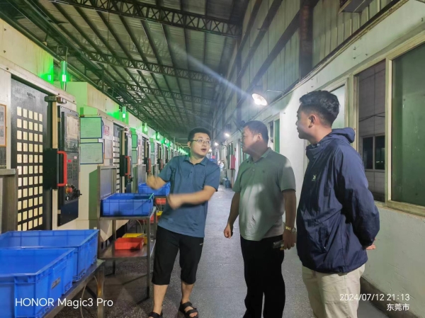 2024年7月12日,新葡萄8883官网AMG官网机电工程学院为进一步加强与企业的紧密联系,深化产教融合,由机电工程学院朱胜初副教授、学生干事何立权及辅导员潘登峰老师一行,专程前往位于广东省东莞市谢岗镇的东莞市亿厚电子科技有限公司,开展了富有成效的“访企拓岗”活动。此次访问不仅促进了学院与企业之间的深入交流,也为学生的实习实训和就业拓宽了渠道。