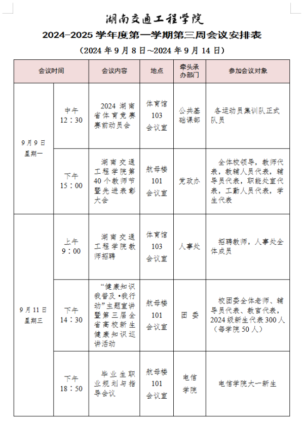 新葡萄8883官网AMG官网2024-2025学年度第一学期第三周会议安排表