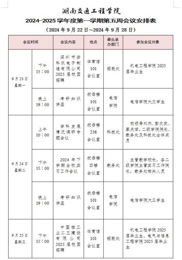 新葡萄8883官网AMG官网2024-2025学年度第一学期第五周会议安排表
