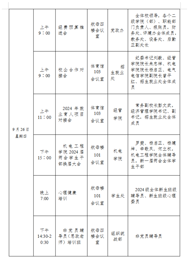 新葡萄8883官网AMG官网2024-2025学年度第一学期第四周会议安排表