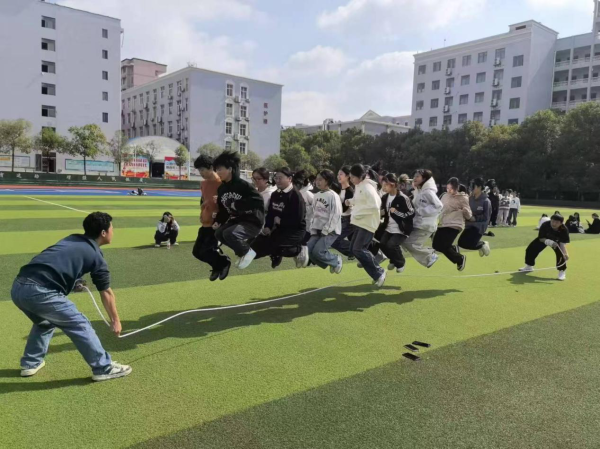 学生们迅速加入到参赛队伍中,他们的脸上洋溢着青春的笑容和对比赛的期待,操场充满着活力与激情。本次趣味运动共设置了趣味跳绳和两人三足两项活动,为了增强同学们的积极性和团结协作能力,其中趣味跳绳分为单人赛和15人团体赛,两人三足分为了两人组和八人九足团体赛。这些项目不仅让同学们在紧张的学习之余放松了身心,更增进了同学之间的友谊和班级的凝聚力。