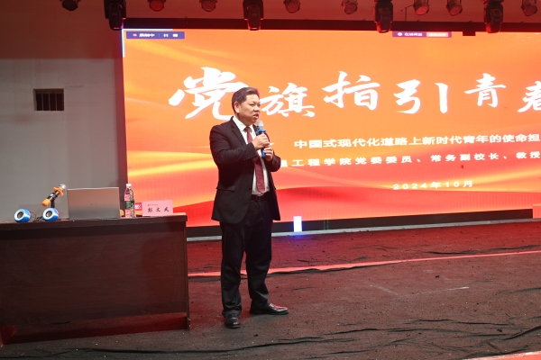 为加强对入党积极分子的培训,做好师生党员的发展工作,10月30日晚7时,学校在大学生活动中心举行2024年下半年(第39期)入党积极分子培训班正式开班。党委委员、常务副校长彭文武出席开班典礼并开讲第一课,组织统战部副部长李佩佩作动员讲话,电气与信息工程学院党总支书记刘忠明主持。