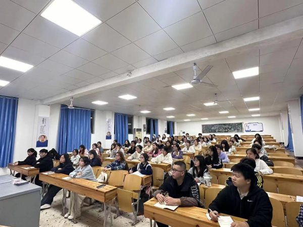 课堂上,学院党总支书记丽以《争做新时代好青年》为题,勉励广大学子要有理想、敢担当、能吃苦、肯奋斗,引导学生树立正确的世界观、人生观和价值观,培育其社会责任感和使命感。