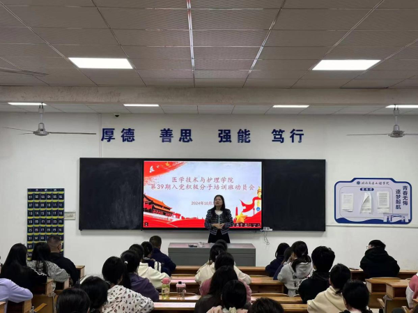 为助力学生深刻理解党的宗旨和使命,认识医学事业在党的事业中的重要地位,引导学生树立正确价值观,增强社会责任感,10月23日晚7点,医学技术与护理学院举办“点亮思想灯塔,引领新风帆”党课活动。此次党课由学生党支部书记贺九芳主持