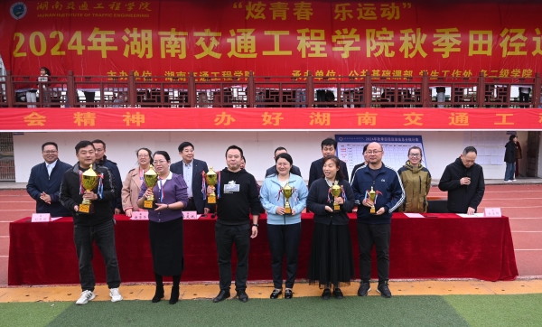 经过激烈的角逐,本次运动会团体总分排名为:第一名经济管理学院,第二名电气与信息工程学院,第三名医学与护理学院,第四名交通运输工程学院,第五名机电工程学院,第六名人文与艺术学院。经济管理学院获最佳组织奖,电气与信息工程学院获道德凤尚奖。交通运输工程学院杨文轩、尹浩翔两位同学在男子实心球项目上双双刷新了学校田径运动会纪录。