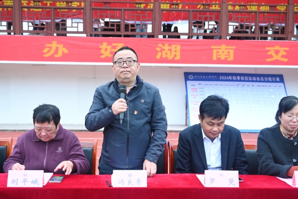 冯良贵致闭幕词。他对校运会组委会、所有参赛代表队和运动员、裁判员、大会工作人员表示感谢,向取得优异成绩的学院和运动员表示祝贺。他指出,在两天的时间里,全体裁判员恪尽职守、公平公正,保证了运动会高质量完成;全体运动员们用精彩的竞技表现诠释了“更快、更高、更强”的体育精神,用拼搏的汗水和青春的活力展示了新时代大学生奋发有为、追求卓越的精神风貌;全体观众遵守纪律、举止文明;各二级学院学生通讯员踊跃投稿,营造出了运动会热烈活泼气氛,使本届运动会真正成为一次振奋人心、汇聚力量、增进友谊的体育文化盛会。他指出,本届运动会的召开,不仅是对新葡萄体育教学水平、赛事组织能力和阳光体育运动工作的一次全面检阅,也充分展示了新葡萄师生的青春活力和时代风采;不仅充分体现了全民健身、健康阳光的主题,也体现了喜迎教学合格评估和学校事业高质量发展的主题,展现了师生们团结向上、充满活力的大学精神风貌。本届运动会共有351名学生参加了11个比赛项目,两位同学破校运会纪录;不同年级和专业的运动员都在赛场上全力以赴,展示着自己的青春活力和体育竞技精神,充分体现了新葡萄人才培养的效果。冯良贵号召广大师生将这种积极向上、团结拼搏的体育精神带到日常的工作和学习中去,将“更高、更快、更强”的体育精神内化为百折不挠的信念与理想,用行动诠释坚持不懈的追求与拼搏,以健康的体魄和阳光的心态,为新葡萄本科教学工作合格评估和“双一流”建设做出更大贡献。
