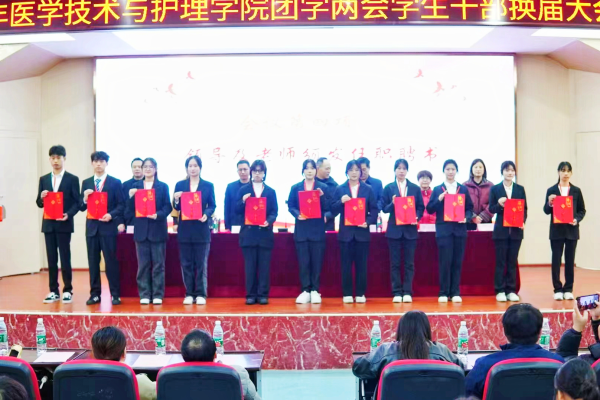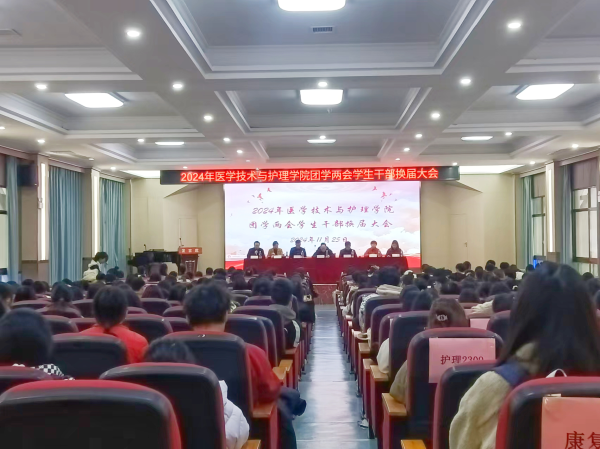 2024年11月25日中午,医学技术与护理学院在航母楼101会议室召开团学两会干部换届大会。学校副校长余孟辉、校团委书记漆在林、学院院长秦晓群、党总支书记邓丽、党总支副书记兼团总支书记刘建军、学生干事老师陈文蓉、实习专干老师谭香以及全体辅导员老师和各班班长、团支部书记、学生代表300余人出席本次大会。校团委、校学生会、各学院两会代表应邀列席会议。会议由刘建军副书记主持。