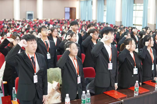 学院党总支书记邓丽宣读新一届团总支和学生会干部的任职名单,领导、老师为新一届主要任职干部颁发任职聘书。学院团总支常务书记罗梅婷、学生会执行主席贺达石代表新任学生干部依次进行发言,对领导、老师、同学们的信任和支持表示由衷的感谢,这次大会是一个新的开始,他们将继续带领广大学生干部齐头并进,积极发挥团学组织的领导协调作用,共同推进学院的学风建设工作。然后,新任新媒体中心主任邓素带领新一届团学两会干部进行宣誓。