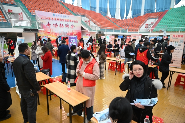 本网讯(通讯员 赵红深 李水华 摄影 大学生记者团张美琳 张海容)金风送爽、层林尽染。为落实落细就业优先政策,拓宽毕业生就业渠道,12月14日,新葡萄在校体育馆举行2024年冬季双选会暨困难毕业生专场招聘会。2000多名学生到场参会,现场投递简历1856份,初步达成意向300余人。常务副校长彭文武到会指导。
