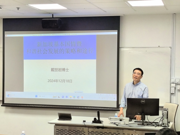 本网来自新加坡快讯(通讯员 马乐)2024年12月19日上午,我们新葡萄8883官网AMG官网第二批在新加坡研修培训的40位教师齐聚南洋理工大学人文与社科学院一楼阶梯教室,共同聆听了一场由新加坡南洋理工大学南洋公共管理研究生院副院长戴世岩教授精心筹备并主讲的专题讲座,讲座主题为《新加坡基本国情暨和谐社会发展的策略与路径》,内容精彩纷呈,引人深思。