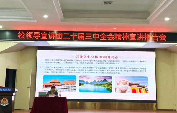 深入领会党的二十届三中全会精神增强学生理想信念引导学生深刻认识国家发展战略与个人成长的紧密联系推动二十届三中全会精神在校园内落地更生,医护学院于1112日晚上7点,在航母楼101组织开展宣讲活动,由校领导刘平娥名誉校长为医护学院宣讲党的二十届三中全会精神。学院党政领导、全体教师和学生代表300余人参加会议。会议由党总支书记邓丽主持。
