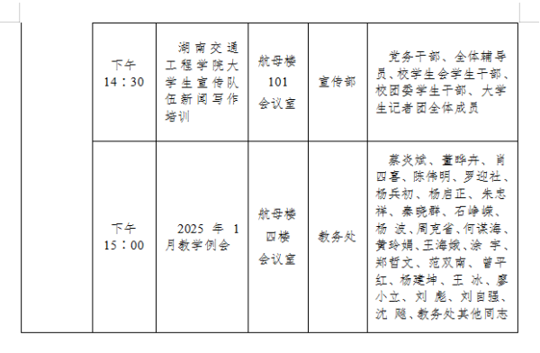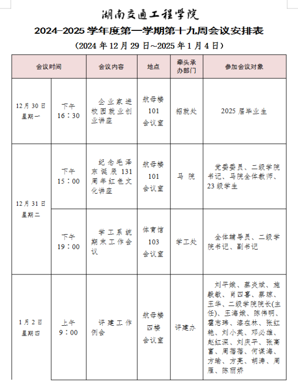 新葡萄8883官网AMG官网2024-2025学年度第一学期第十九周会议安排表