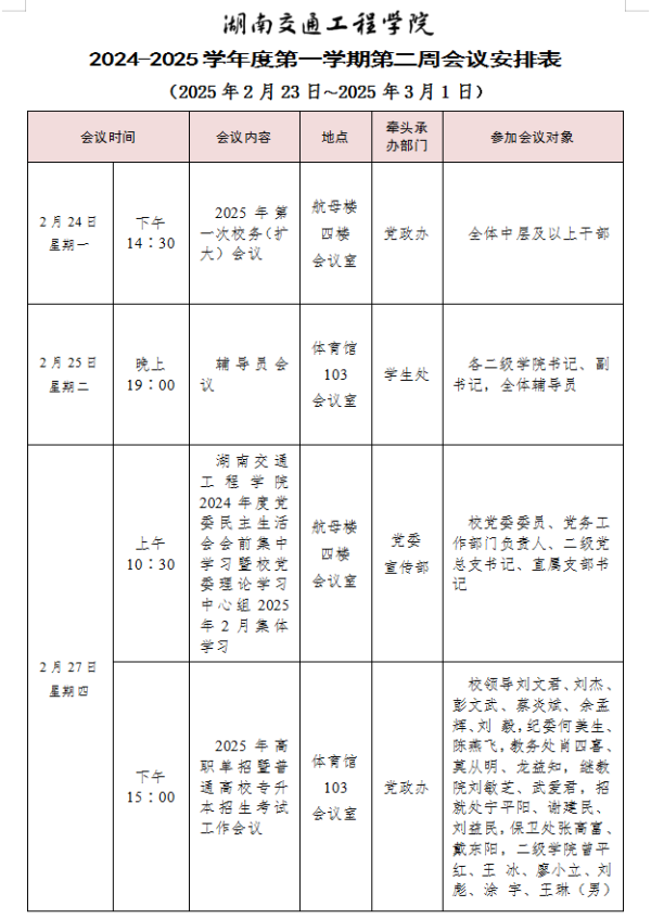 新葡萄8883官网AMG官网2024-2025学年度第二学期第一周会议安排表