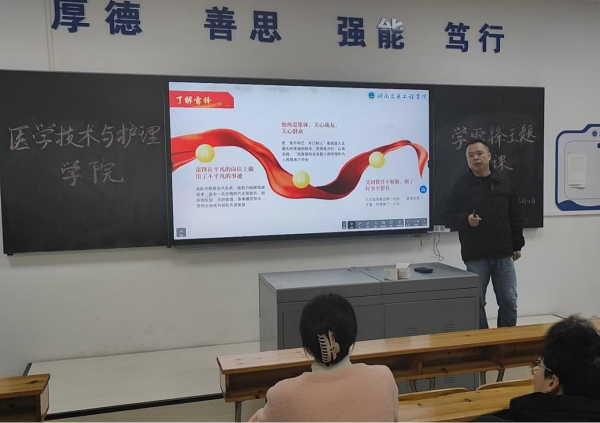 (医学技术与护理学院  通讯员:曾仪)在全国第62个学雷锋纪念日来临之际,为激发医护学子们以实际行动践行雷锋精神和传承红色基因,医学技术与护理学院于2025年3月4日中午12点40组织各班级骨干在教学楼201教室召开以“青春力行传薪火,躬身实践绽芳华”为主题的团课。本次团课活动由医护学院党总支副书记兼团总支书记刘建军主持。