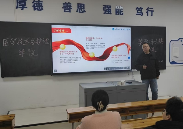 在全国第62个学雷锋纪念日来临之际,为激发医护学子们以实际行动践行雷锋精神和传承红色基因,医学技术与护理学院于2025年3月4日中午12点40组织各班级骨干在教学楼201教室召开以“青春力行传薪火,躬身实践绽芳华”为主题的团课。本次团课活动由医护学院党总支副书记兼团总支书记刘建军主持。