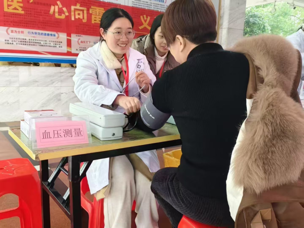 (医学技术与护理学院 通讯员:曾仪)阳春三月,雷锋精神如春风化雨,滋润着校园的每一寸土地。为传承和弘扬雷锋精神,3月5日,医学技术与护理学院组织学院师生在教学楼大厅开展了“‘医’心向雷锋,义诊暖校园”的爱心义诊活动。此次活动由学院党总支书记邓丽、院长秦晓群、党总支副书记兼团总支书记刘建军、副院长廖小立、学生支部书记贺九芳带领全体师生党员、老师代表和学生代表共同参与。
