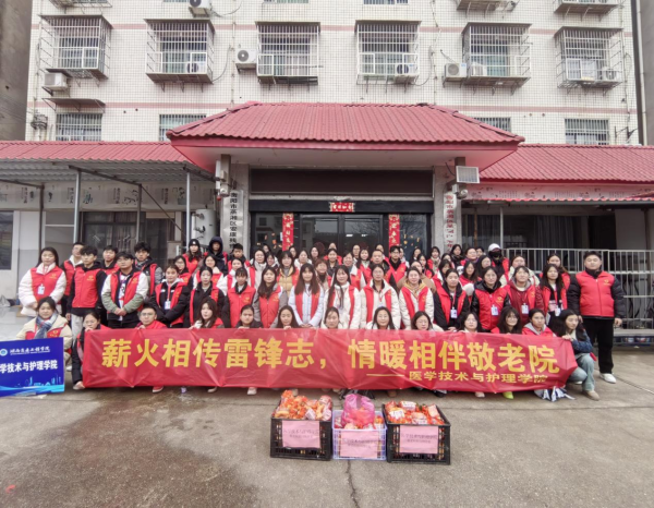 (医学技术与护理学院 通讯员:曾仪)在这个洋溢着温情与奉献的雷锋月,为传承雷锋同志“服务人民,助人为乐”的奉献精神,积极践行社会主义核心价值观,3月6日,医学技术与护理学院党政领导、全体师生党员以及青年志愿者代表等80余人前往呆鹰岭敬老院开展“薪火相传雷锋志,情暖相伴敬老院”雷锋月主题活动,以实际行动为老人们送去温暖与关爱。
