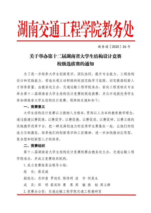 关于举办第十二届湖南省大学生结构设计竞赛校级选拔赛的通知