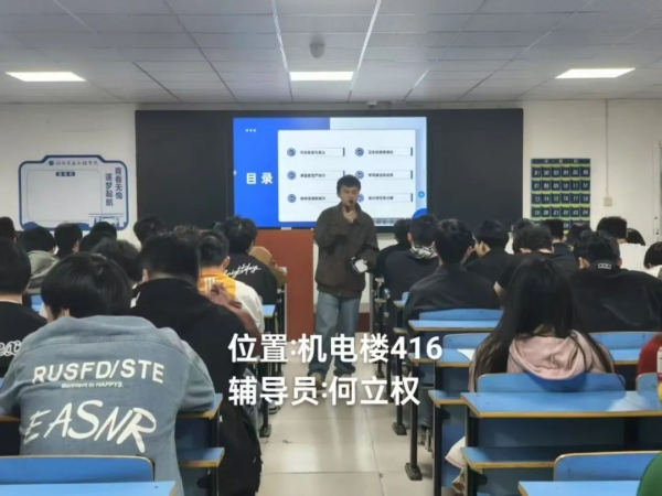 2025年3月23日,正值周日,当日晚上19:00,机电工程学院组织全体在校学生开展了本学期第五周的主题班会。本次班会以“迎评促建 全员行动”为核心主题,聚焦本科教学工作合格评估冲刺阶段的各项任务,旨在全面动员全体学生积极参与到评估工作中来,为学校高质量通过复评奠定坚实基础。