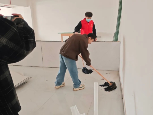 尽管清扫任务繁重,但大家热情高涨,不怕脏、不怕累,认真细致地对待每一个角落。在整个清扫过程中,何立权老师始终陪伴在同学们身边,言传身教,耐心指导大家如何高效完成清扫任务,让同学们在劳动中不仅提升了实践能力,更感受到了老师的关怀与鼓励。学院副书记辛敬凤书记虽因事务缠身未能亲临现场,但始终心系此次活动,通过电话、信息等方式时刻关注着进展,多次叮嘱注意事项,并对同学们的付出予以肯定,让大家在忙碌中倍感温暖与鼓舞 。