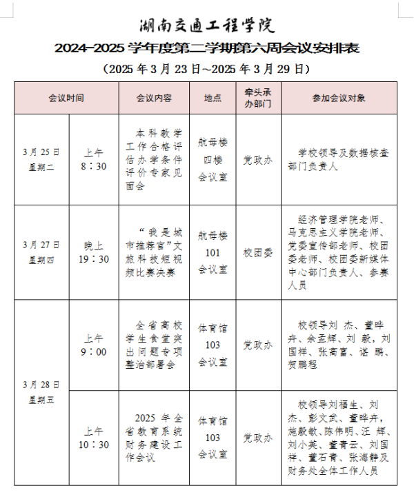新葡萄8883官网AMG官网2024-2025学年度第二学期第六周会议安排表