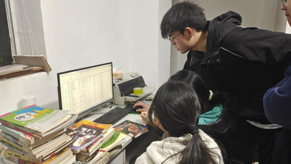 走进图书馆六楼,映入眼帘的是一派热火朝天的景象:同学们三人一组、五人一队,有的穿梭于书架间精准“定位”错位图书,有的紧盯电脑屏幕严谨核对数据,还有的蹲坐地上为老旧书籍粘贴新标签。整整四个小时,百余册“迷路”的图书重归正位,300余条数据记录完成更新,原本杂乱的书架焕发新生。“每一本图书的编码都是‘责任坐标’,就像党员的责任清单必须清清楚楚。”信控2301班的刘思思边录入数据边说道。