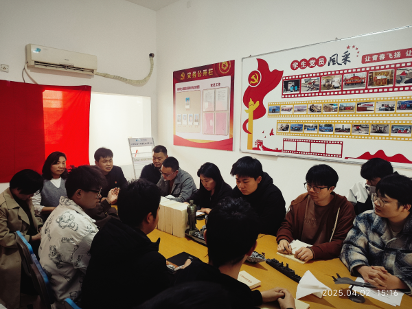 2025年4月2日,机电学院在6栋党员活动室成功开展了“党建引领进宿舍·党的二十大精神润心田——以党员先锋行动助力‘一站式’社区建设”活动。机电学院党总支书记罗斐、党总支副书记辛敬凤、学生党支部书记夏翠云等学院领导与老师,以及6栋栋长朱胜初、学生干事何立权,和20余名学生党员、预备党员、入党积极分子齐聚一堂,共同参与此次活动,推动党建工作与宿舍管理深度融合。