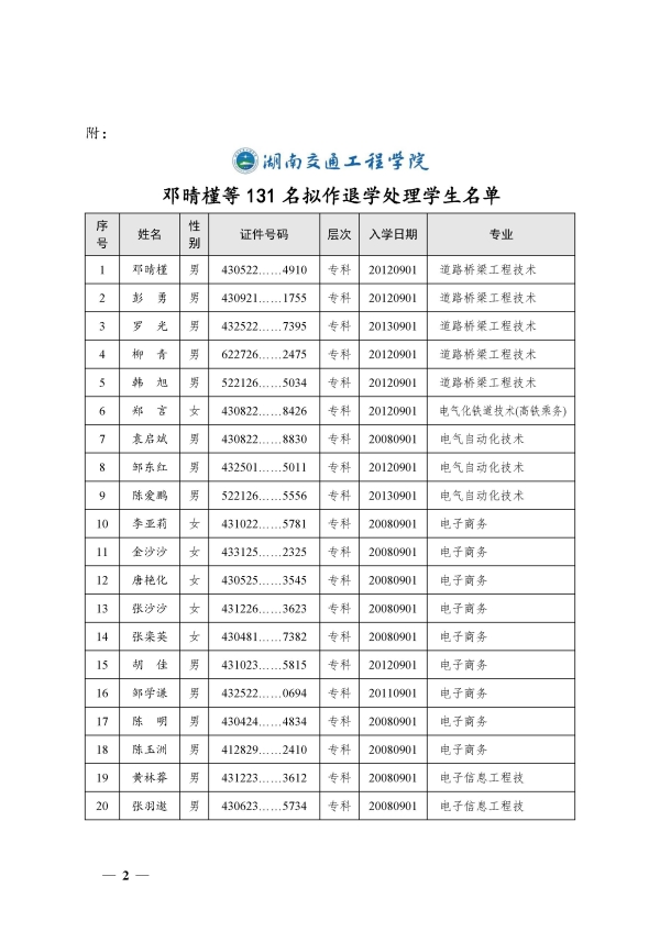 关于对131名保留学籍学生拟作退学处理的公示(湘交院学管〔2025〕12号)